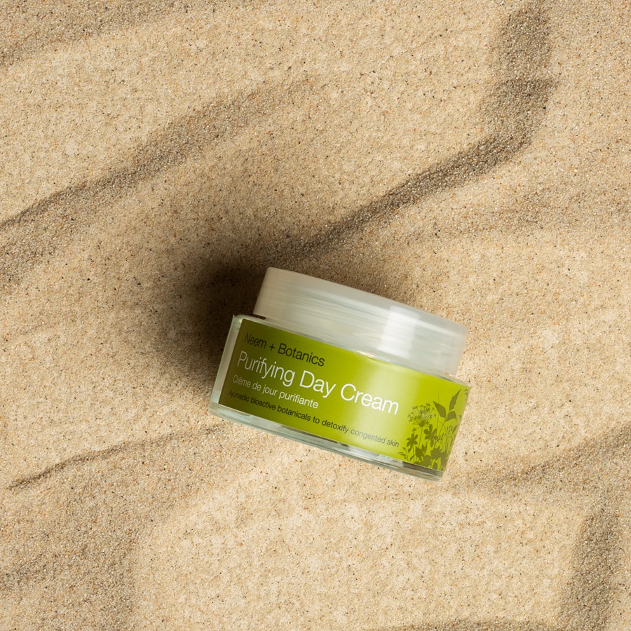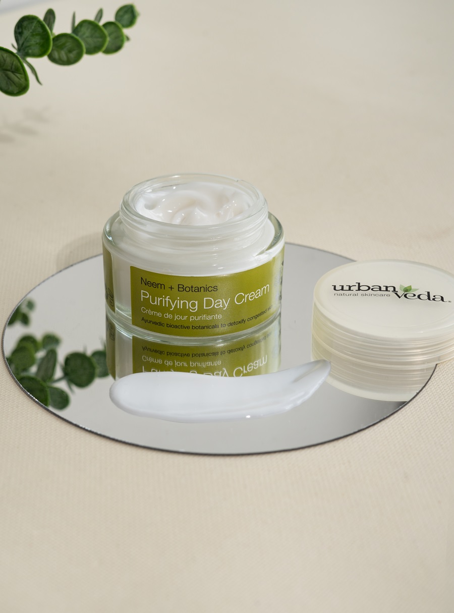 Naturally formulated using Ayurvedic principles, our wonderfully lightweight and hydrating Purifying Day Cream contains enlivening and revitalizing botanicals of cold-pressed pure Neem oil, healing Witch hazel and refreshing Spearmint, Orange and Eucalyptus. Brimming with phytonutrients, our bioactive infusion works in synergy with collagen-boosting Arjuna to reduce excess sebum, minimize pores and lightly mattifies the complexion.