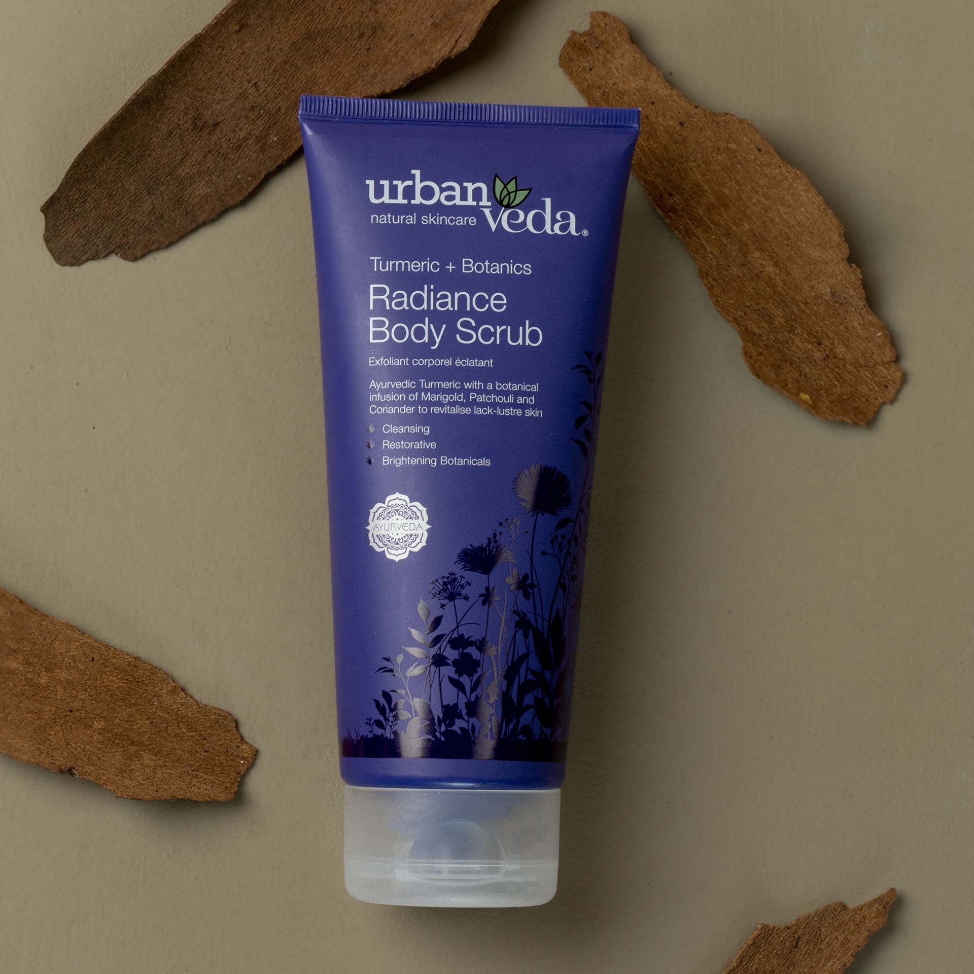 Blended with Ayurvedic Turmeric to improve skin tone and heal blemishes, our Radiance Body Scrub harnesses plant-based cleansers and natural exfoliants of pumice and sustainably-sourced upcycled Pomegranate shell powder to cleanse, moisturize and boost all-over radiance. Infused with brightening and aromatic essential oils of Orange, Marigold and Coriander and superfruits Papaya and Goji berry to soften skin, hydrate and replenish.